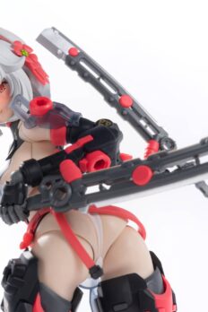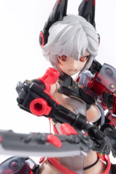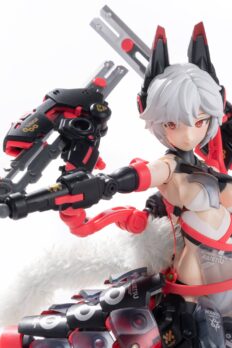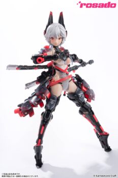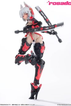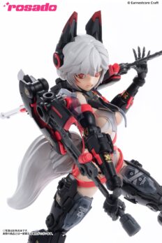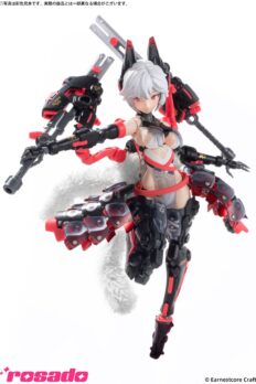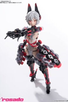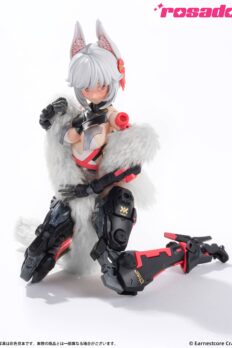 Rasetsu Sekiko returns to Ernest Core Craft’s “Rosado Project” original mecha girl series! A fully movable eyeball gimmick allows both of her eyes to be moved freely; interchangeable facial parts are included to give her a rich variety of facial expressions. 3mm-diameter holes are supplied in various places, so she can use weapons, armor, and accessories equipped with 3mm-diameter shafts. Front and rear hair parts with different designs are included — with and without an ahoge, fox ears, and mecha ears — combine them to double the variety of hairstyles! Her splinted armor has multiple joints, and can flexibly change its shape to match her pose. Her Powered Arm Scabbard has an expansion gimmick, and can serve as a sheath for the Powered Jet Heavy Sword. A general-purpose stand is included (unassembled), and she also has a fur shawl with a built-in wire to add extra expressiveness to her poses. Order her for your own collection today!