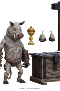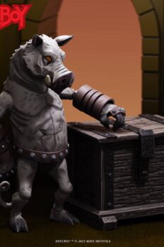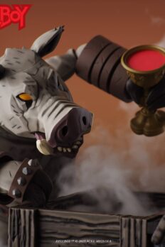 The embittered changeling Gruagach wants to enact his revenge against Hellboy, and to do that, he’ll start a brutal war with dire consequences. Gruagach from “The Wild Hunt” story has 26 points of articulation, mallet, blood chalice with lid, hinged Blood Queen box, and alternate hands.