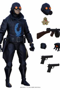 In the New York of 1937, the Lobster must stop both German Agents and a dangerous cult from gaining possession of a powerful invention. Lobster Johnson from “The Iron Prometheus” story has 24 points of articulation and includes alternate gas mask head, two pistols, holster, machine gun, Memnan Saa amulet and alternate hands.