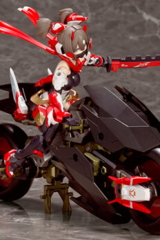 Asura Ninja returns to Kotobukiya’s “Megami Device” figure-kit lineup! Her “Machinika” body can get into a wider range of poses than ever before (very important for a ninja)! Parts replacement allows her to be displayed in “armed mode” with all her armor, or in “base mode,” as just a lovely girl. Three pre-painted faces and five pairs of extra hands are provided, and she’s armed with shuriken, kunai, ninja swords and other weapons too; the 3mm ports she’s equipped with also allow her to use “M.S.G” series items, as well as “Frame Arms” and “Frame Arms Girls” weapons. Maybe best of all, she’s molded in color so painting isn’t necessary; decals are provided for her eyes and markings. Order her for your own collection today!