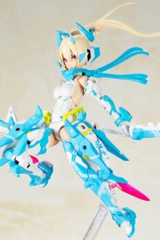 Megami Device Asura Ninja returns in her secondary color scheme! Her Machinika body is highly posable, and she can be enjoyed barefoot and bare-handed with parts replacement; she has a new hairstyle too, which is interchangeable with her original hairstyle. She has 3 prepainted faceplates, and she comes with all the things a ninja needs: shuriken, kunai, ninja swords, and other weapons too. In addition, she can also use weapons and armor from Kotobukiya’s M.S.G., Frame Arms and Frame Arms Girls series! Order her today!