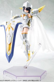 Kotobukiya’s “Megami Device” Buillet Knights Executioner Bride is back! She’s equipped with the newest addition to the “Megami Device” weapon lineup — the massive M.S.G KNIGHT MASTER SWORD! She also shows off a brand-new pearl white color scheme and new facial expressions, and is wonderfully articulated for maximum posability. She can be displayed in Armed Mode or Unarmed Mode, and a variety of weapons and joint parts are included. You can also use weapons and armor from various “M.S.G,” “Frame Arms,” “Frame Arms Girl,” “Hexa Gear” and “Sosai Shoujo Teien” items thanks to the 3mm-diameter ports placed in each part. Decals are also included for her eyes and markings. Only limited quantities are available, so order her for your own collection today!