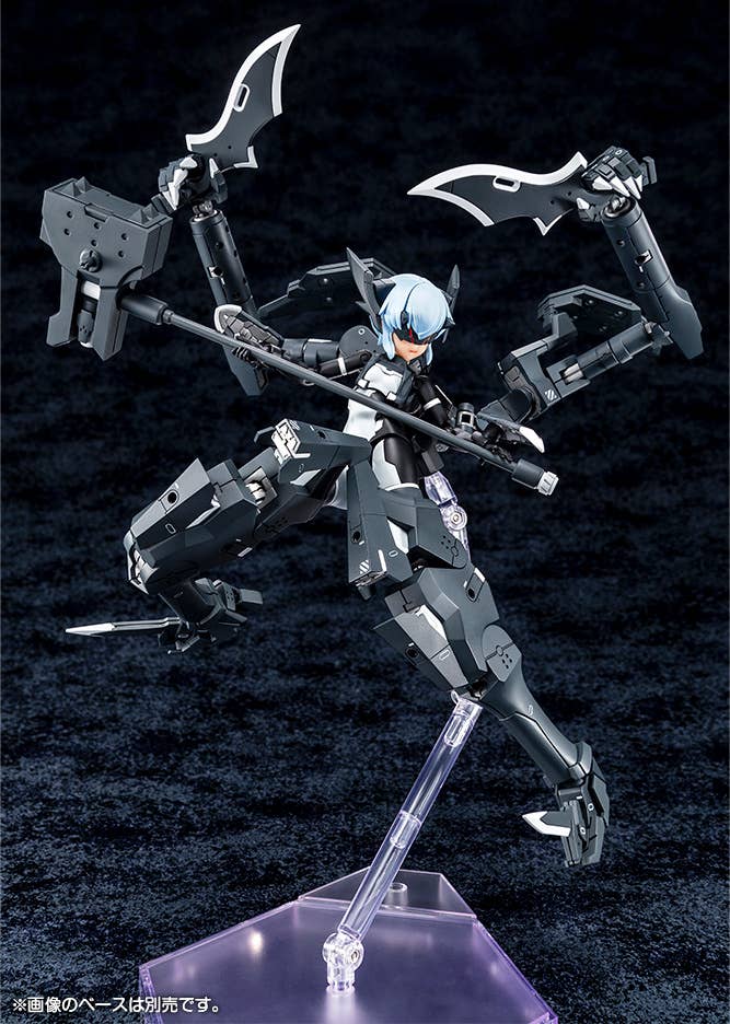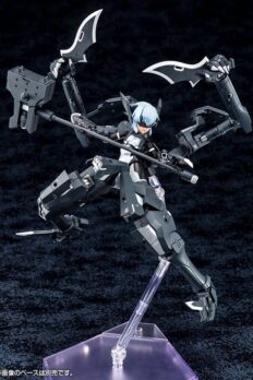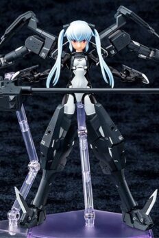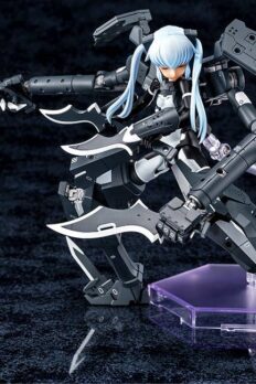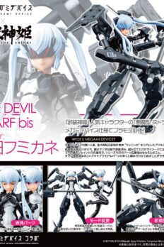 The popular character Devil Strarf bis is the latest collaboration between “Busou Shinki” and “Megami Device”! The improved version of Devil Strarf bis has been perfectly reproduced in “Megami Device” specifications with new weapons, a new visor, and more! The jet-black mechanical demon designed by Shimada Fumikane and the products of the time have been reconstructed to modern plastic model standards with the utmost respect. The body has been self-updated to Machinika specifications from the MMS designed by Masaki Asai himself! It includes essential elements such as a hip joint structure that allows the figure to sit cross-legged, while also achieving a balance of coexistence with previously released “Megami Device” figures. Some 3.3mm version extension joints are included as bonus parts so that longtime fans can enjoy them, and you’ll be able to combine them with original “Busou Shinki” items. (Please be aware that processing may be required.)