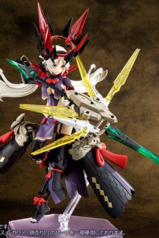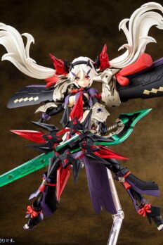 Megami Device’s Susanowo gets a new plastic model kit release in her Regalia armor! While retaining the same voluptuous proportions of the main body, her Regalia armor version features newly designed hair and chest parts for a whole new look! She shares some equipment with the ‘Amaterasu Regalia,’ version and also features all-new weapons and with a royal appearance befitting of her “Regalia” title.