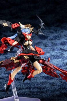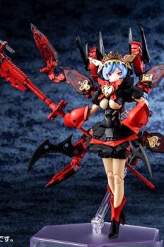 The newest member of the “Megami Device” lineup from Kotobukiya is Chaos & Pretty: Queen of Hearts! Based on Chaos & Pretty Alice, she includes newly sculpted parts and the Exceed Binder 2 as a skirt. You can enjoy her in various forms using the new large sickle-shaped arm parts! Some of the newly sculpted parts include playing card-patterned accessories, so you can enjoy original customizations based on your own ideas. She comes with three types of newly designed painted faces; you can reproduce her armed mode and her body mode without armor by parts replacement. The amazing range of motion of her Machinika body allows her to sit naturally; a variety of joint parts and weapons are included. She’s also equipped with 3mm-diameter joints and heads, so she can be used with existing “M.S.G”, “Frame Arms,” “Frame Arms Girl,” “Hexa Gear,” “Sousai Shoujo Teien” and “Arcanadia” series items. Eye decals are also included. Order her for your own collection today!