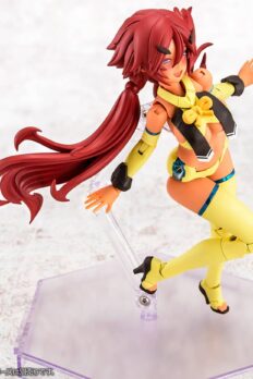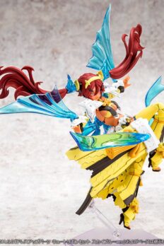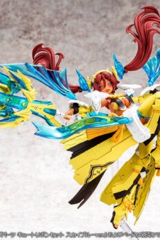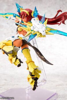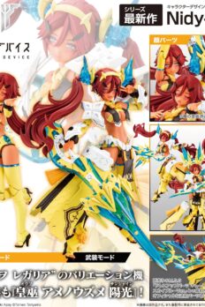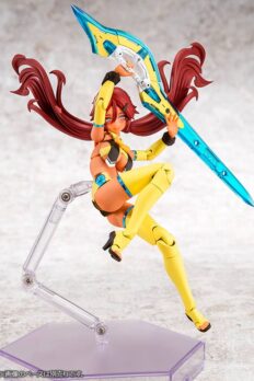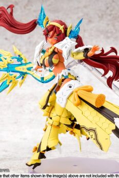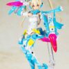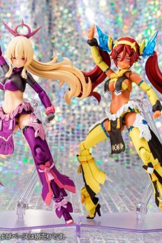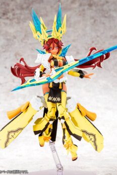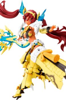 Auv Ame No Uzume Sunshine, a variation of the Susanoo Regalia, joins the “Megami Device” action figure-kit lineup from Kotobukiya! The Susanoo Regalia has been given a spectacular new coloring based on Ame No Usumze from the Japanese legend of Amano Iwato, with its black-purple base changed to yellow and white, evoking the image of bright sunlight! She features three newly designed faces with a closed-mouth smile, an open-mouthed smile, and a singing expression, and her torso features plenty of exposed skin, as well as the all-new Skin Color E for a healthy and active image. Her distinctive weapons and the large cape parts on her legs can be rearranged to change their shape! Like other “Megami Device” figures, she’s extremely posable, and can be displayed in the “armored mode” and in the “body mode” without armor. She’s also highly compatible with the “M.S.G Dress Up Parts Cute Ribbon Set Sky Blue Ver.” for an extra-flashy appearance! Her 3mm joints and head are also compatible with existing “M.S.G,” “Frame Arms,” “Frame Arms Girl,” “Hexa Gear,” “Sousai Shojo Teien,” and “Arcanadia” series items. Decals are included for her eyes and markings as well. Welcome this bright ray of sunlight into your own collection today!
