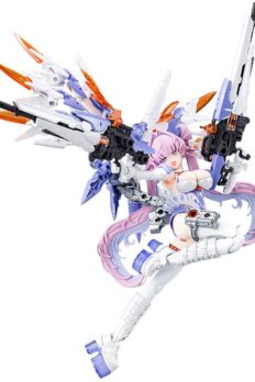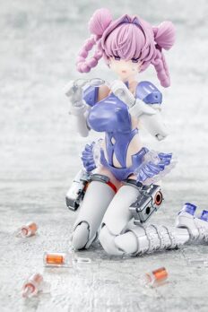 - The incredible range of motion of the “Machinica Series” body allows for natural poses, such as holding her weapons and sitting.