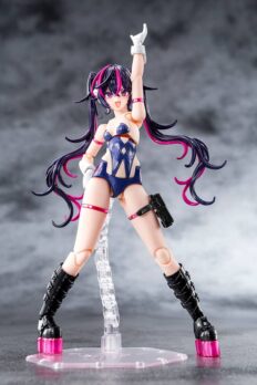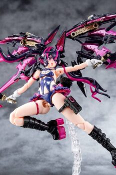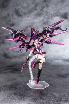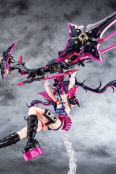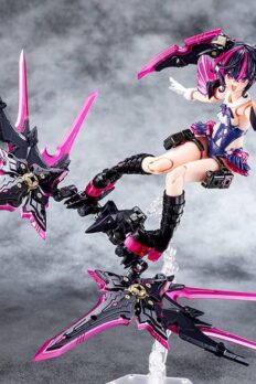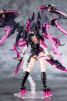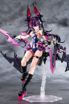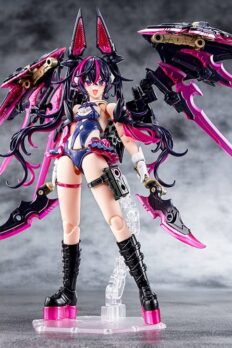 Desire Maiden Raider is the latest addition to Kotobukiya’s “Megami Device” action-figure model-kit lineup! This kit debuts a new series compatible with Block 2 bodies from the “Megami Device” creators; the character designs are a combined effort from long-time eye print developer “Ama” Amama and “Buster Doll” mechanical designer Tasuku. Raider features a large head mechanism and rear wing that forms a bat-like silhouette; she also has delicate long twin tails that perfectly suit her slightly haughty nature!