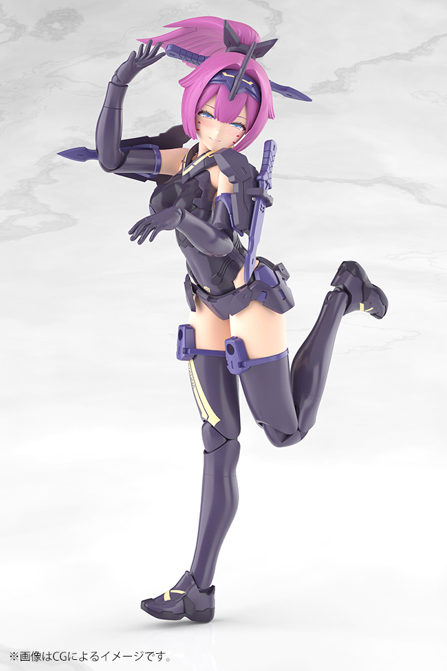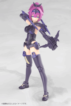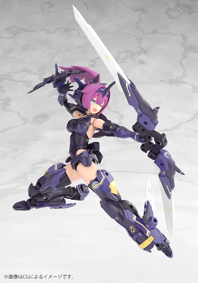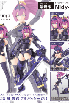 Asura Archer Kizuna Shadow Edition Full Package is the latest addition to Kotobukiya’s “Megami Device” series! She features new coloring and additional weapons compared to Asura Archer Kizuna! Asura Archer Kizuna’s proportions have been significantly altered, giving her a silhouette on part with the “Kou Miko” series, and this armed version adds the weapons of the standard Asura Archer. And in a first for the “Megami Device” series, she also comes with four pre-printed faces, making this a truly complete package! The design is handled by Asura designer Nidy-2D-, and the “Machinica Block 1.5L” body designed by Apsy Masaki allows for dynamic, beautiful poses!