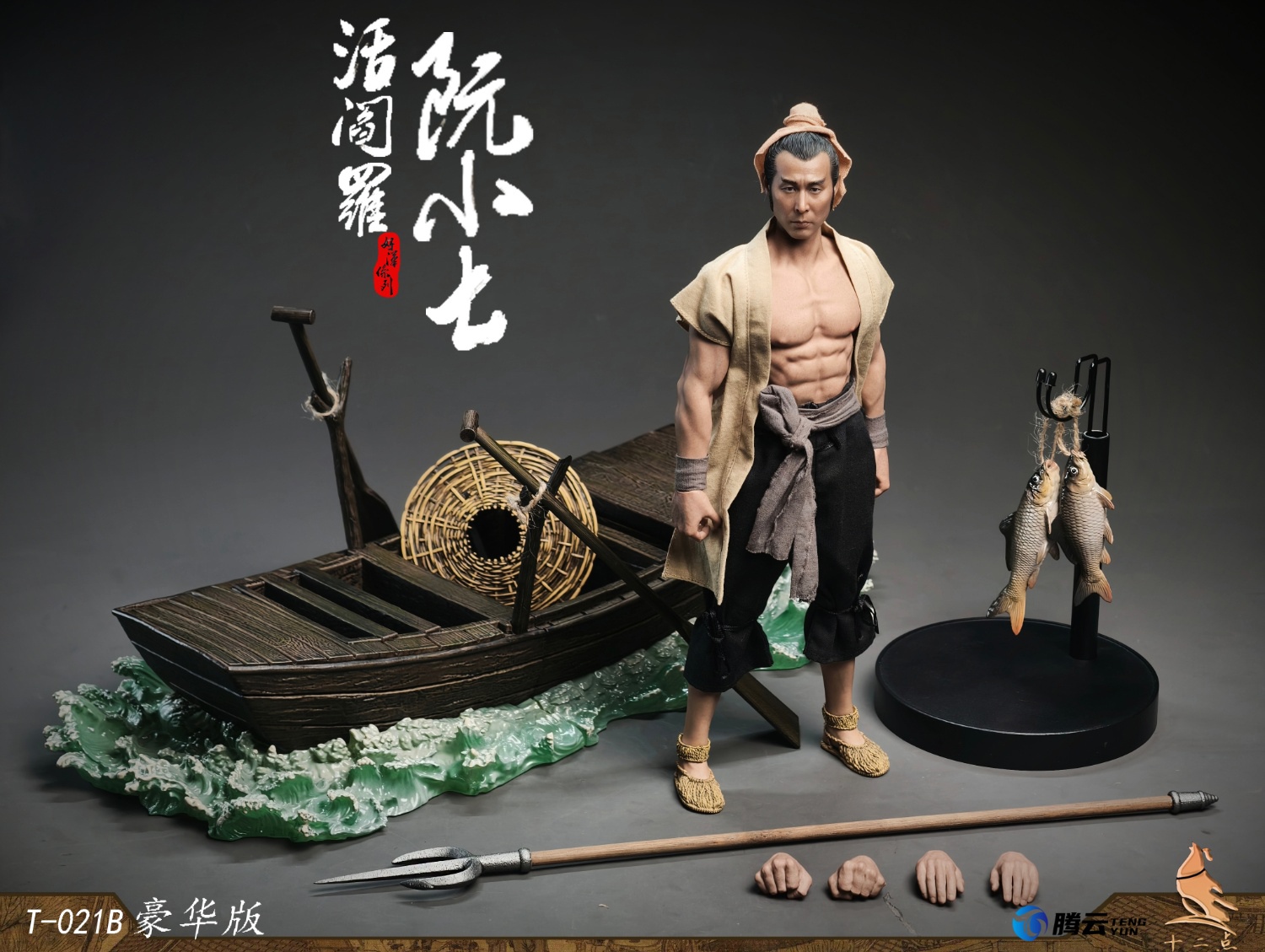 7. One 1/6th scale fishing boat with water splash, two oars, and one straw hat